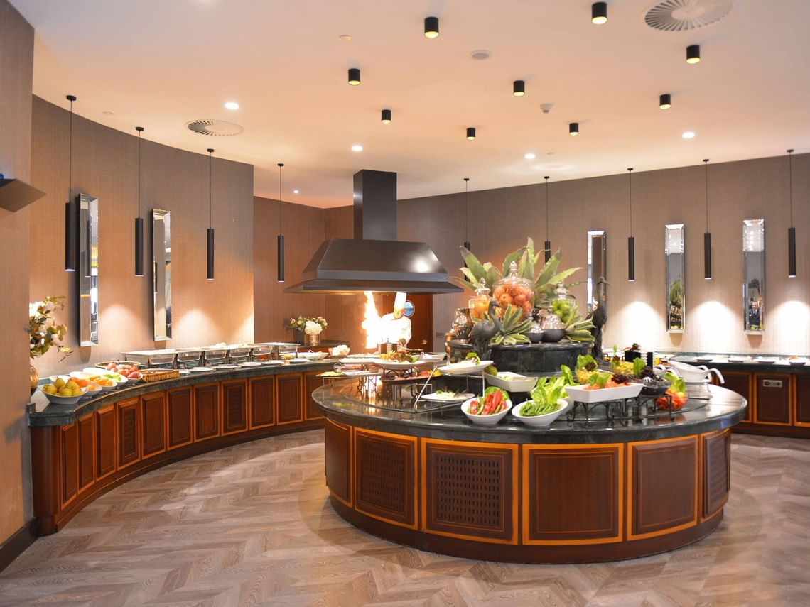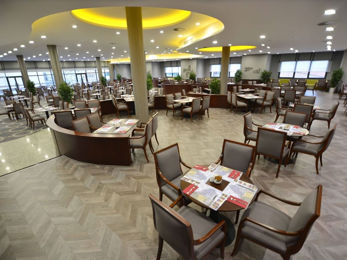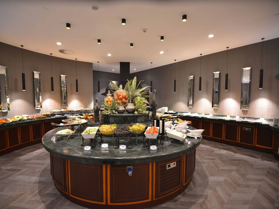 Deliz Restaurant, güne keyifli bir başlangıç yapmak isteyen misafirlerine zengin içerikli bir kahvaltı deneyimi sunmaktadır. 550 kişilik kapasitesi ve açık hava teras alanı ile dikkat çeken restoranımızda, taze ve yerel ürünlerle hazırlanan açık büfe seçeneklerinin yanı sıra, açık mutfakta pişirilen sıcak lezzetler ve taze meyve suları servis edilmektedir.