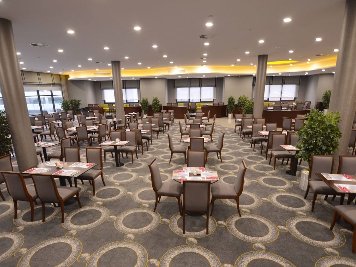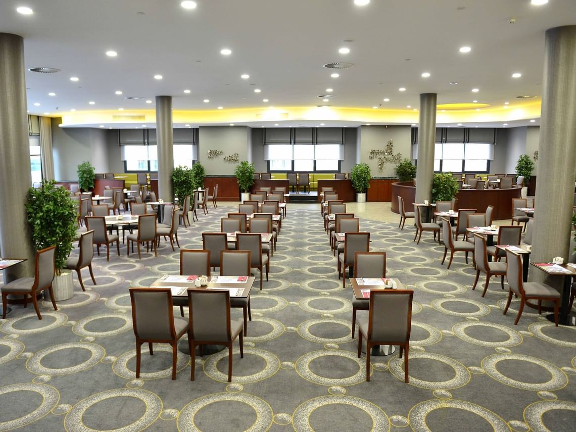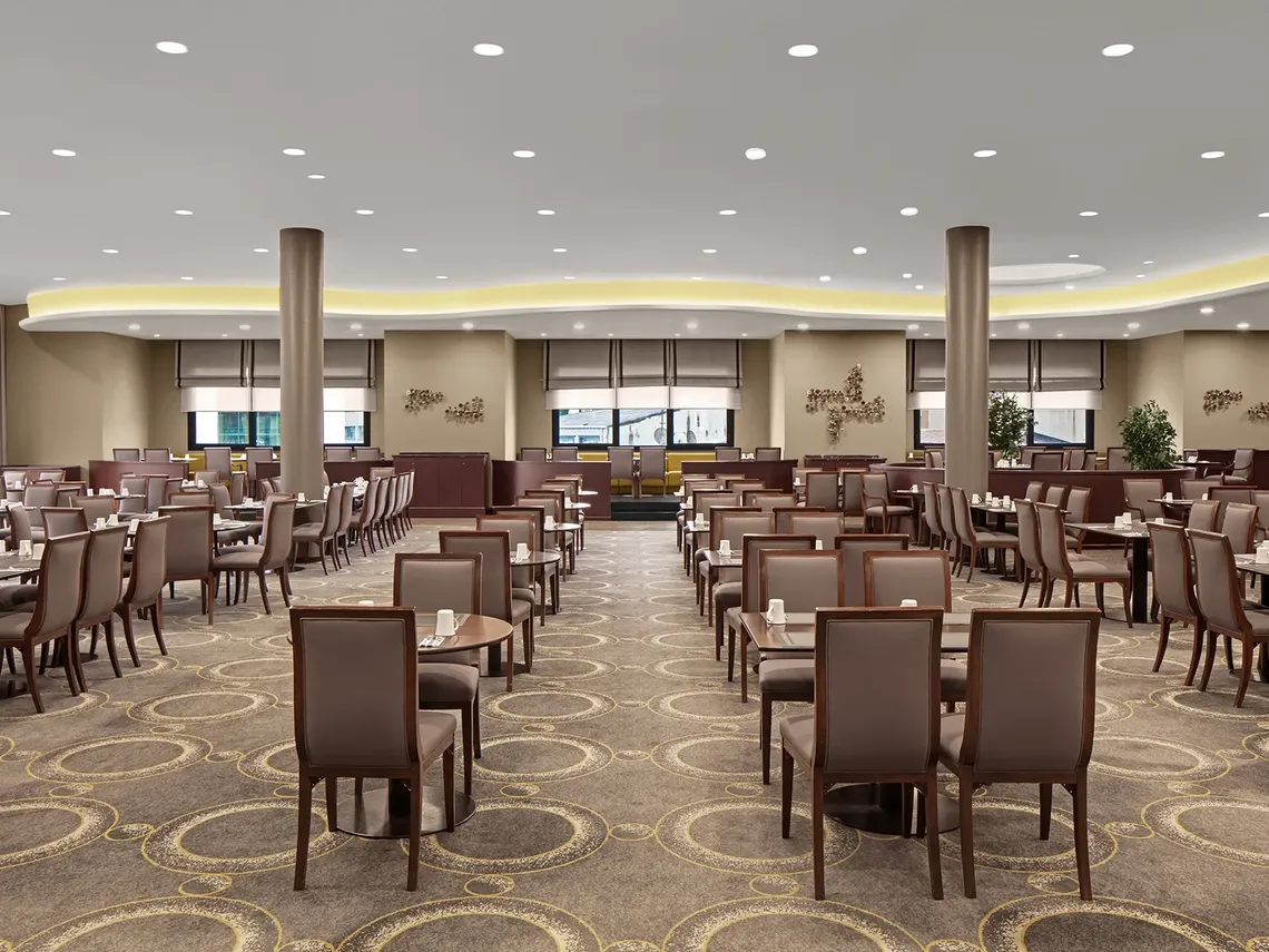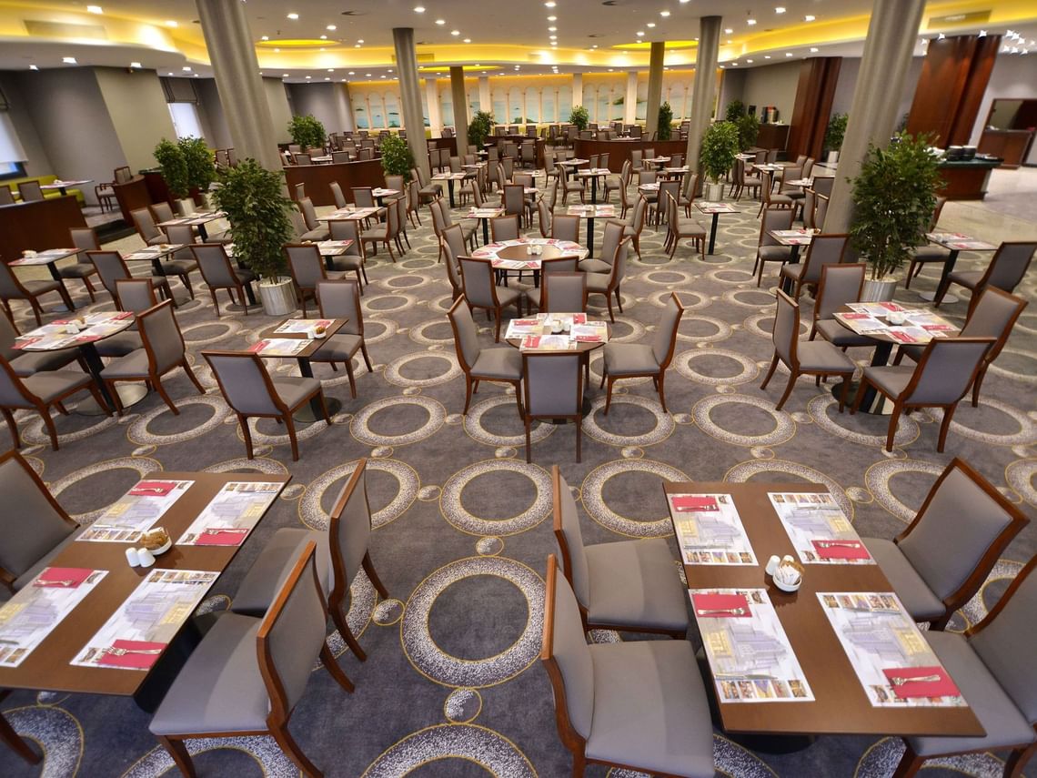 Deliz Restaurant, güne keyifli bir başlangıç yapmak isteyen misafirlerine zengin içerikli bir kahvaltı deneyimi sunmaktadır. 550 kişilik kapasitesi ve açık hava teras alanı ile dikkat çeken restoranımızda, taze ve yerel ürünlerle hazırlanan açık büfe seçeneklerinin yanı sıra, açık mutfakta pişirilen sıcak lezzetler ve taze meyve suları servis edilmektedir.
