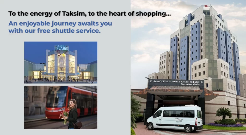 Our complimentary shuttle service departing from the hotel is available on weekdays and Saturdays for your convenience. We offer easy and comfortable transportation along the route to Taksim Square, Cevahir Shopping Mall, and Mecidiyeköy Metro Station.